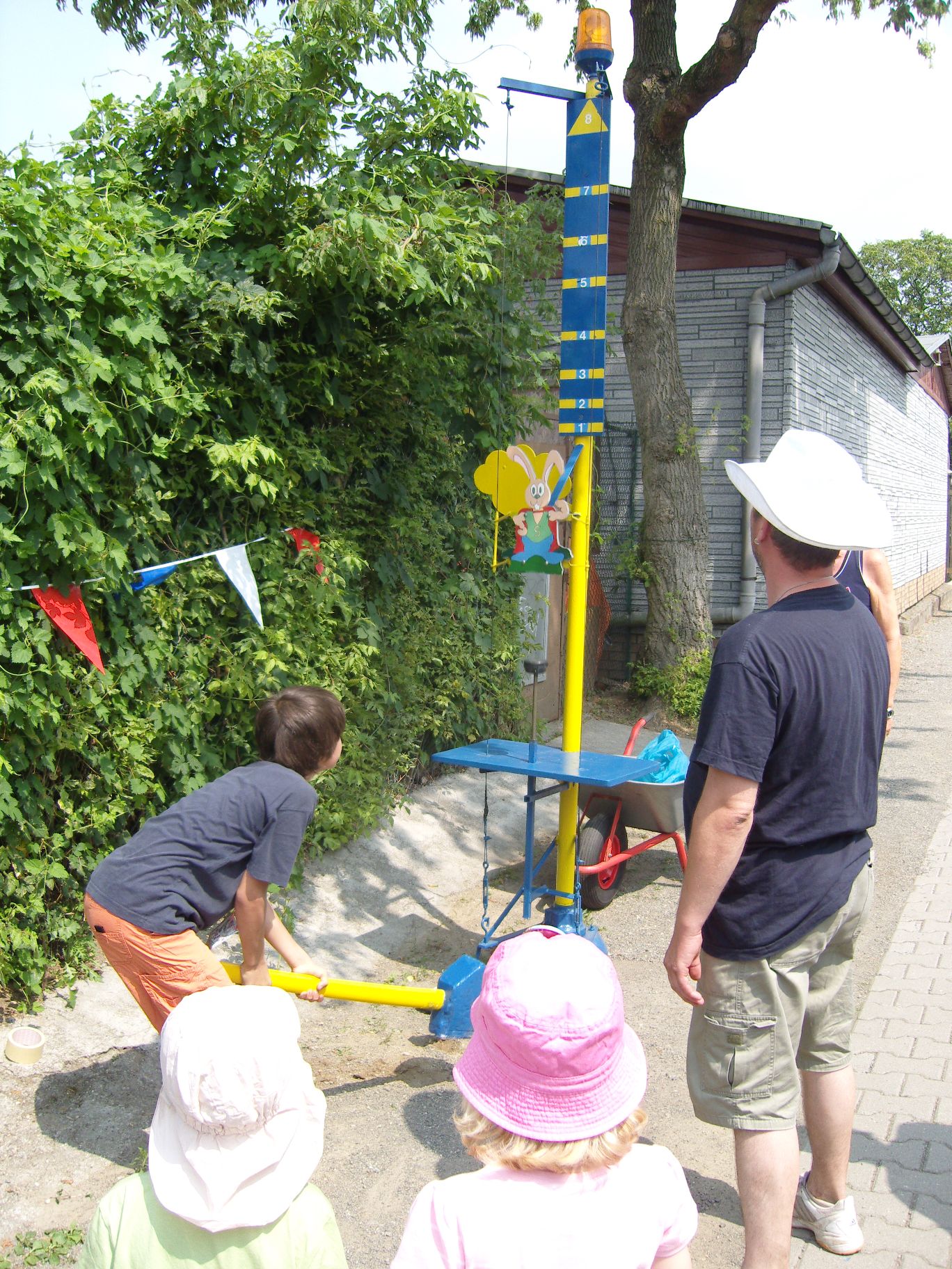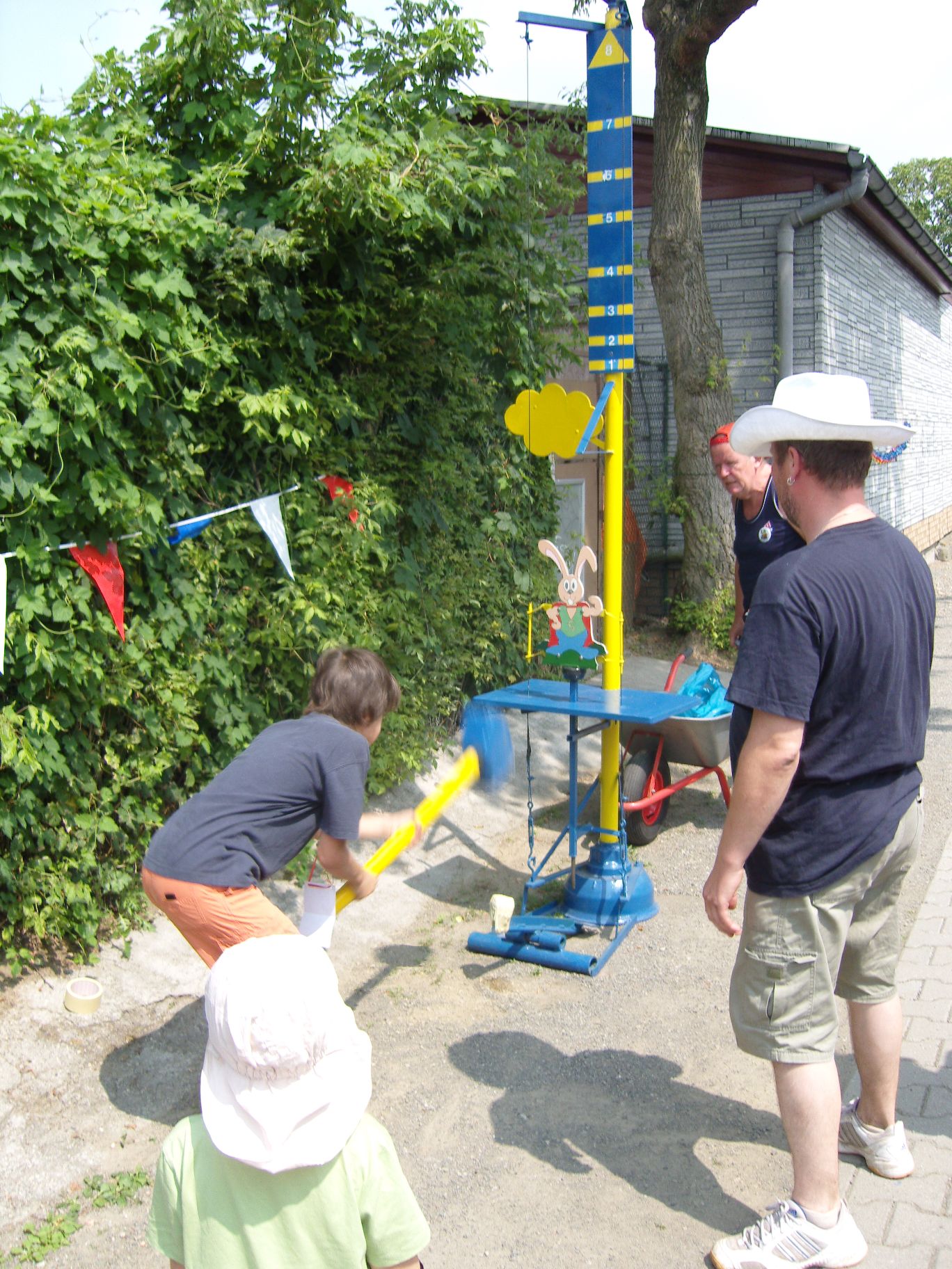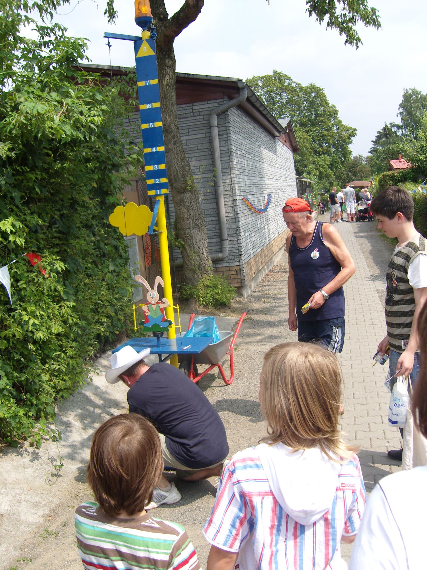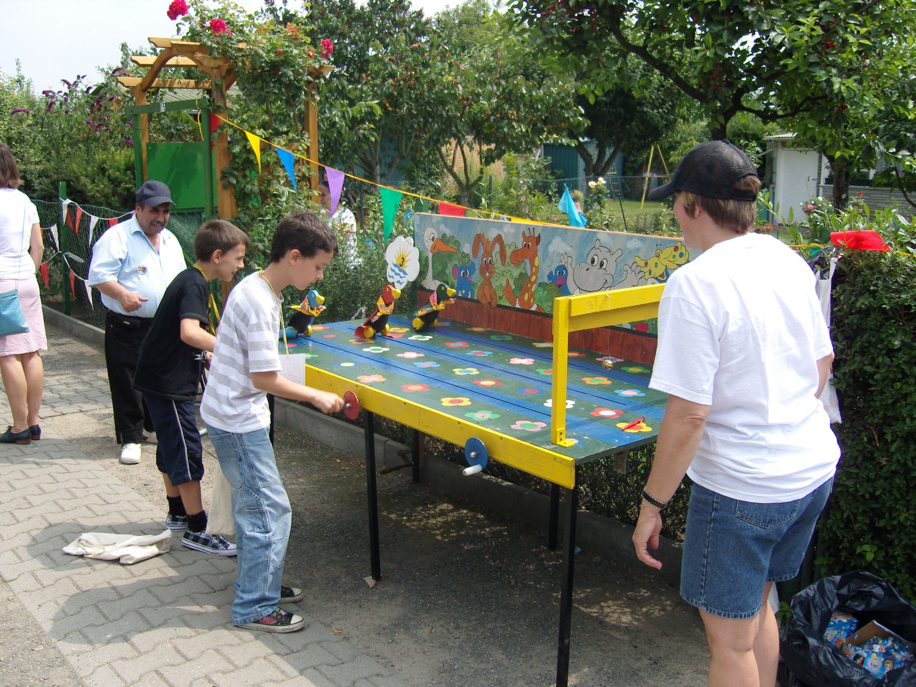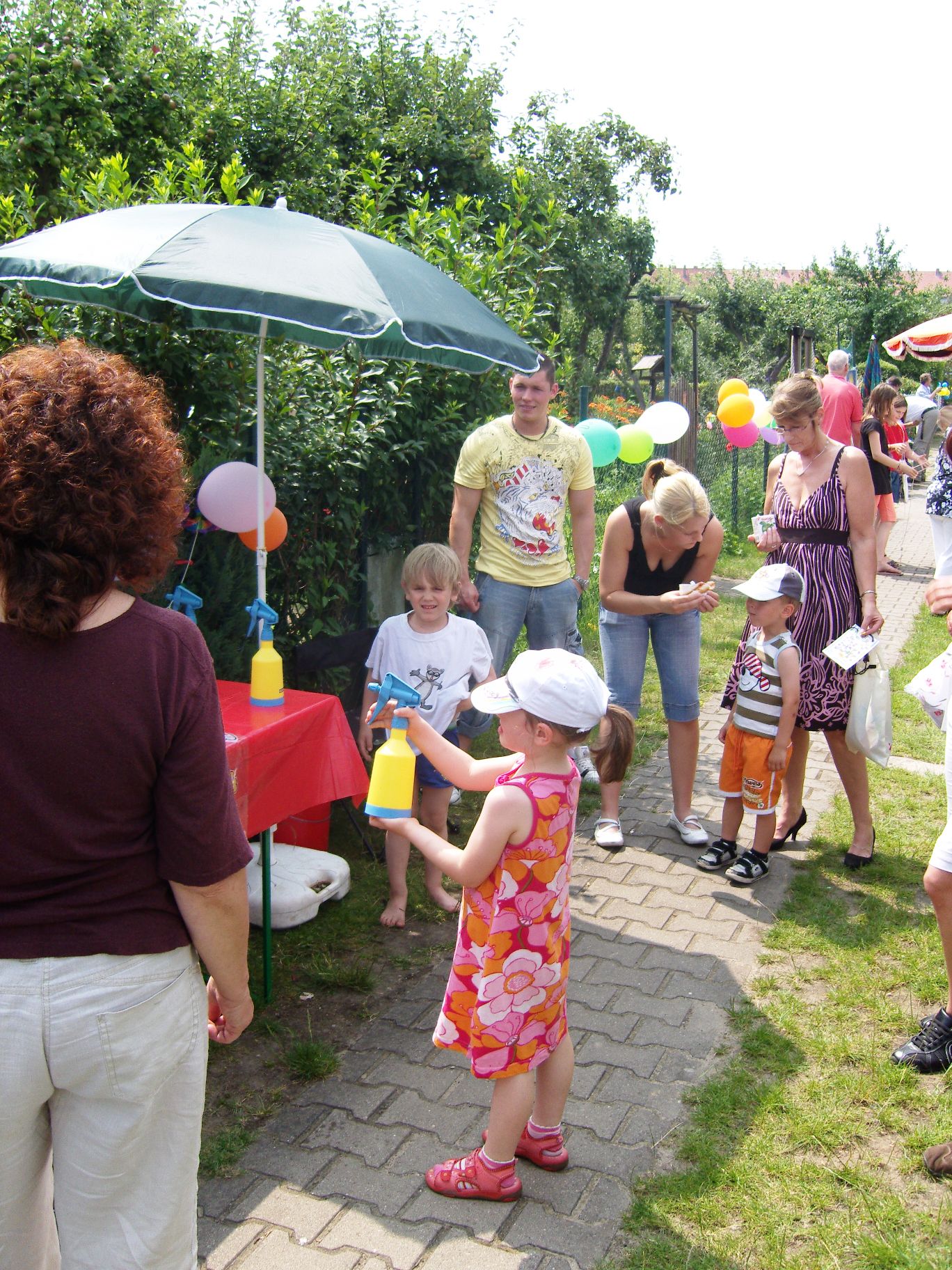 Das neue Spritzspiel (die Kinder müssen mit einer Spritze Tischtennisbälle treffen)