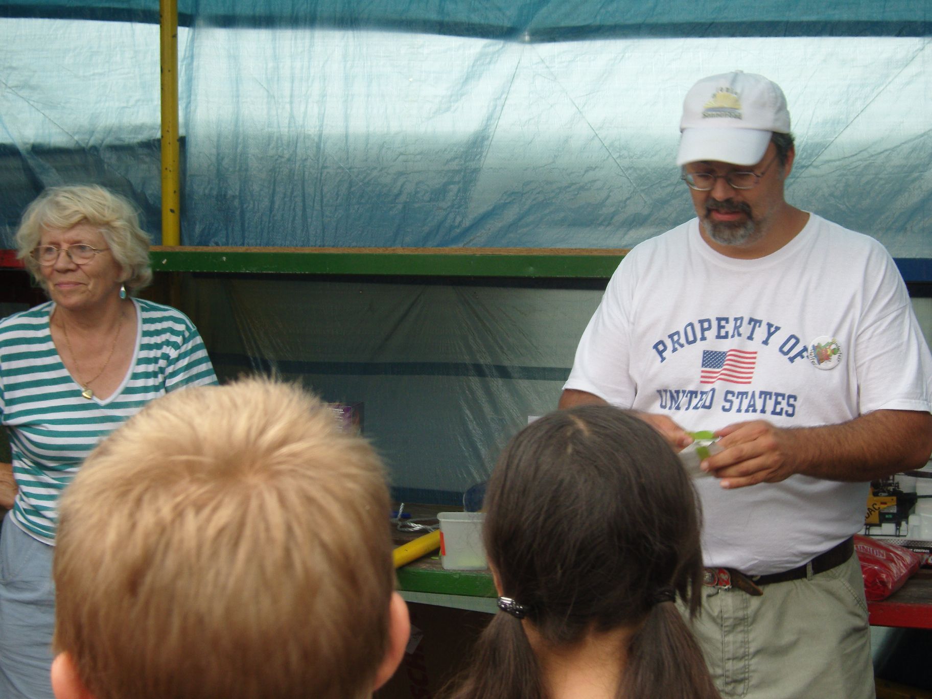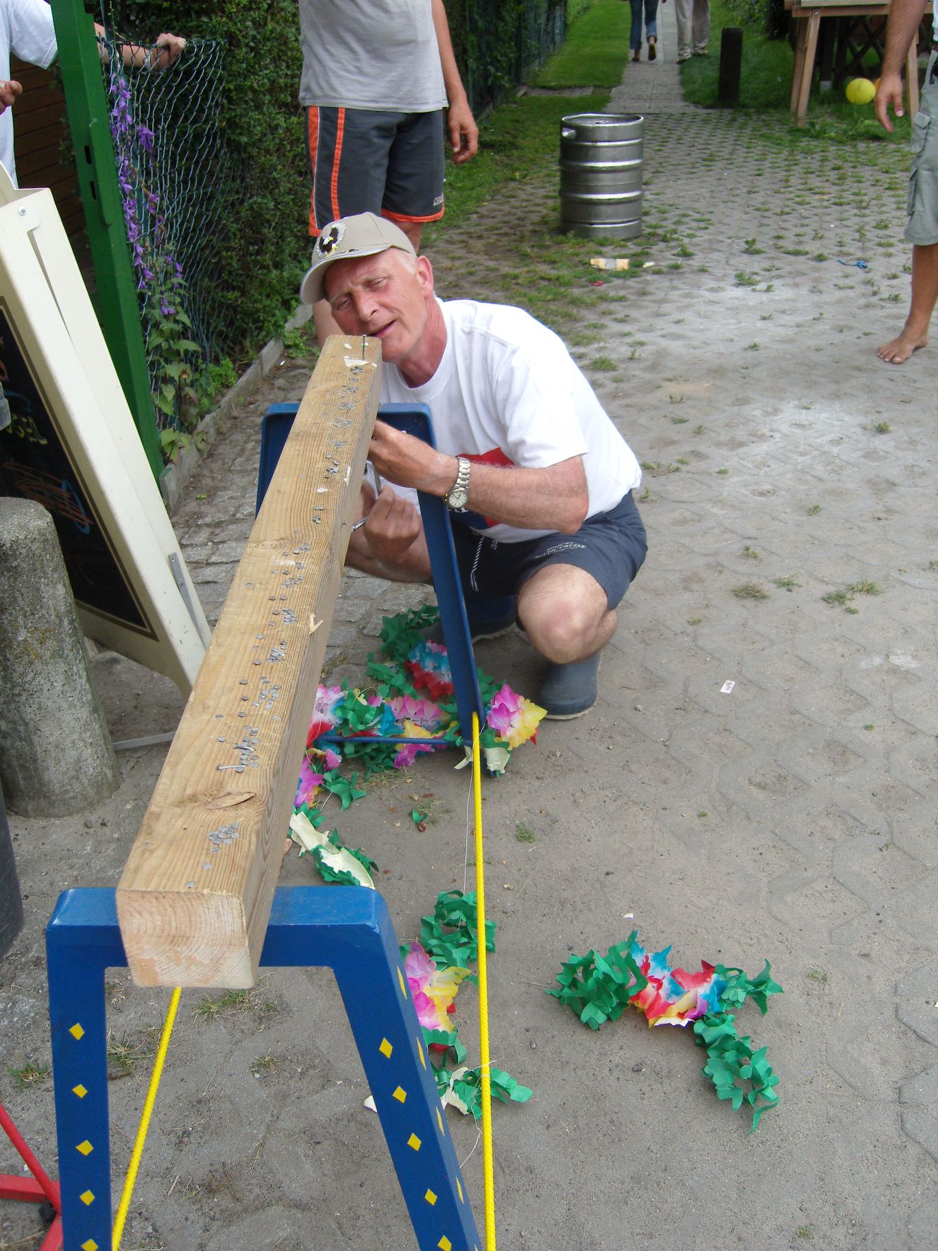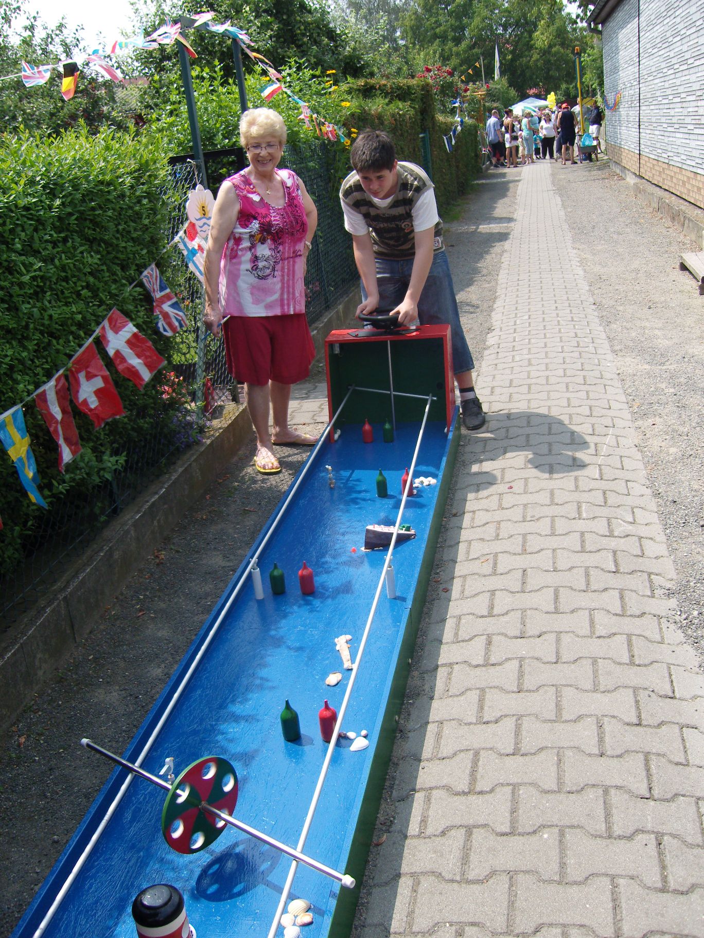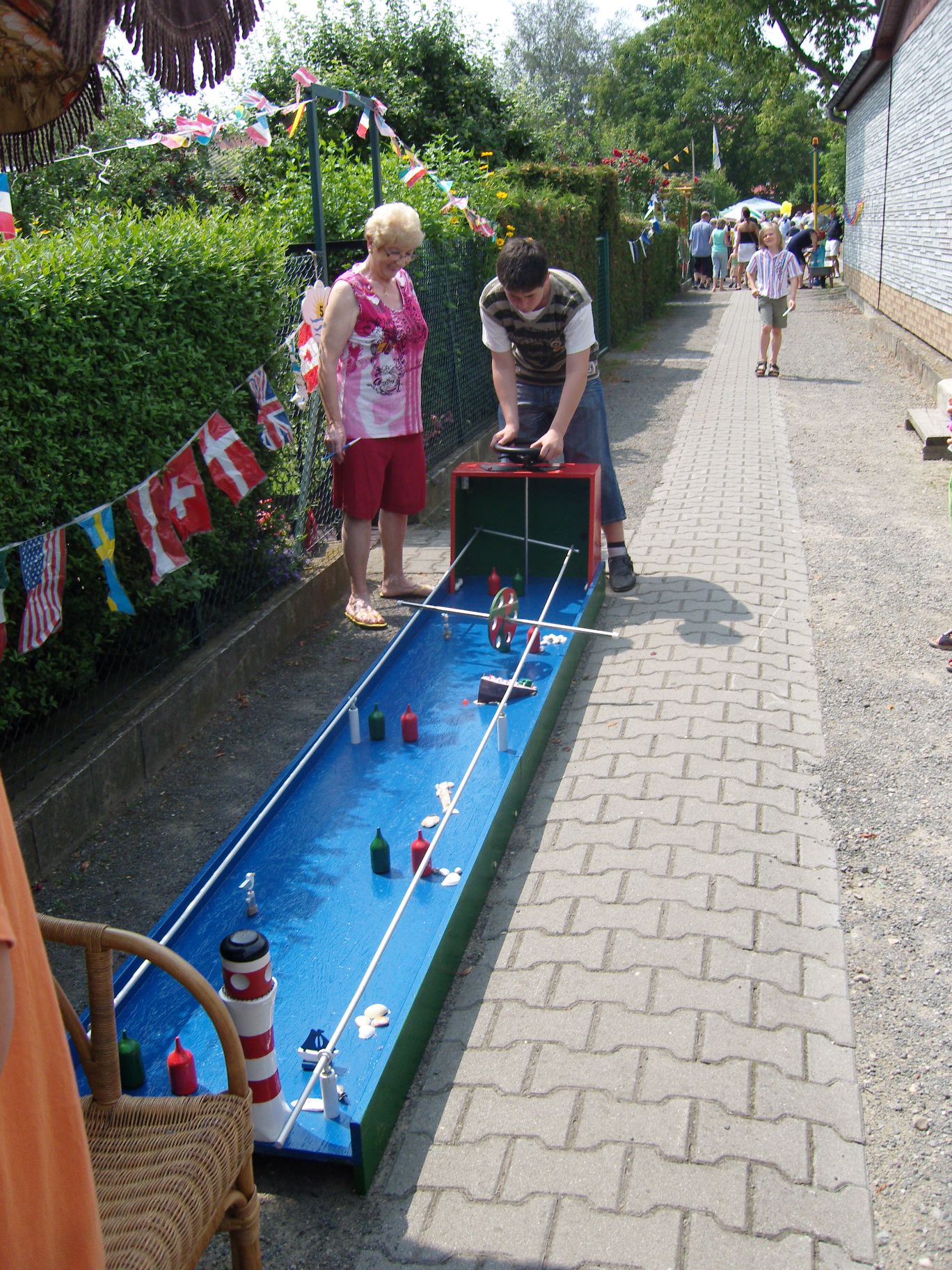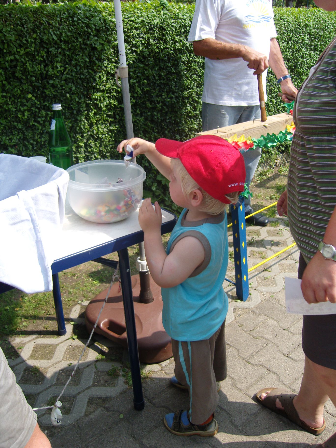 Das neue Spritzspiel (die Kinder müssen mit einer Spritze Tischtennisbälle treffen)