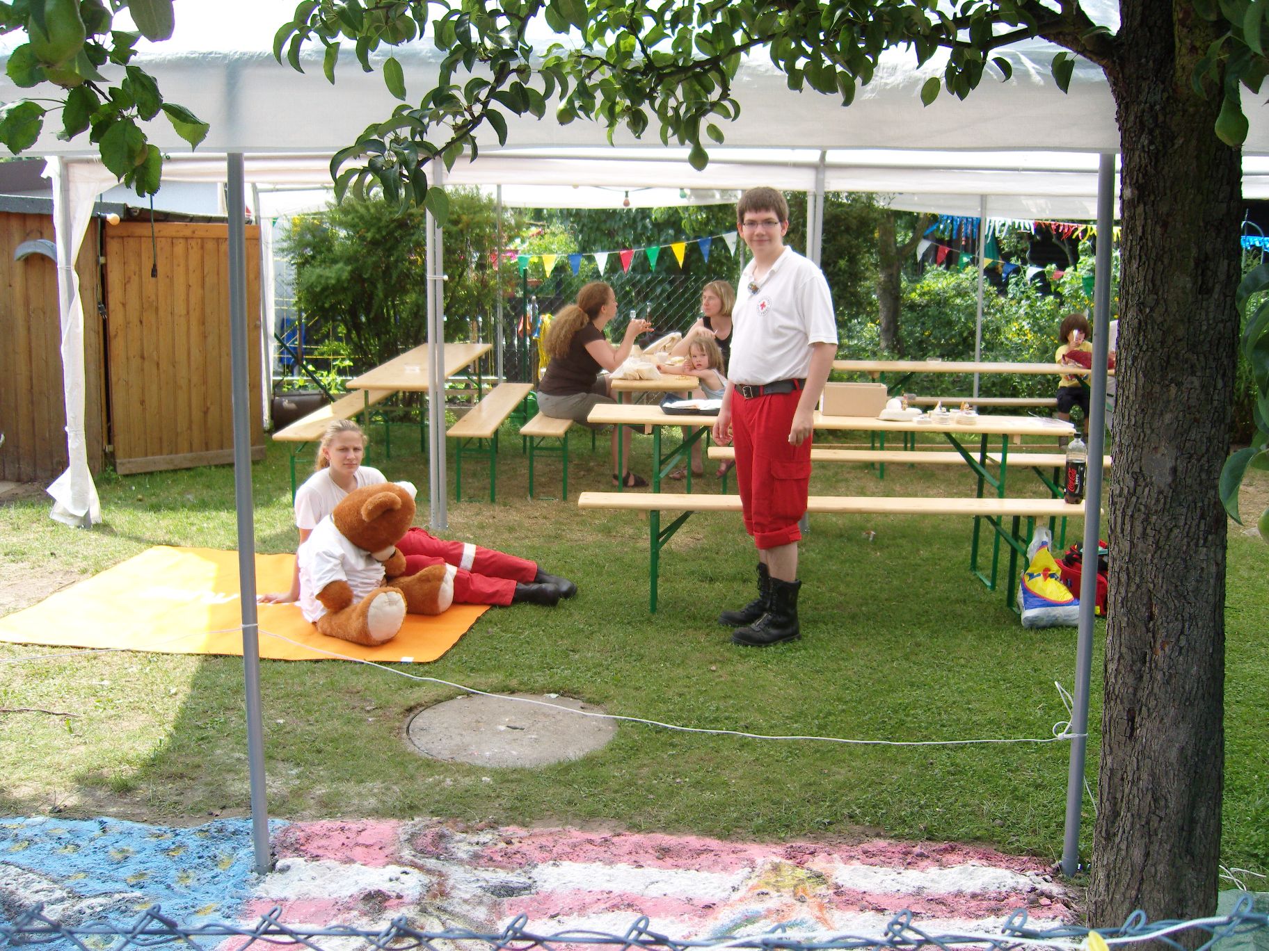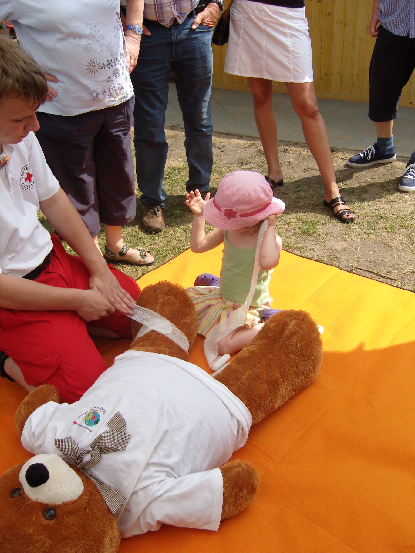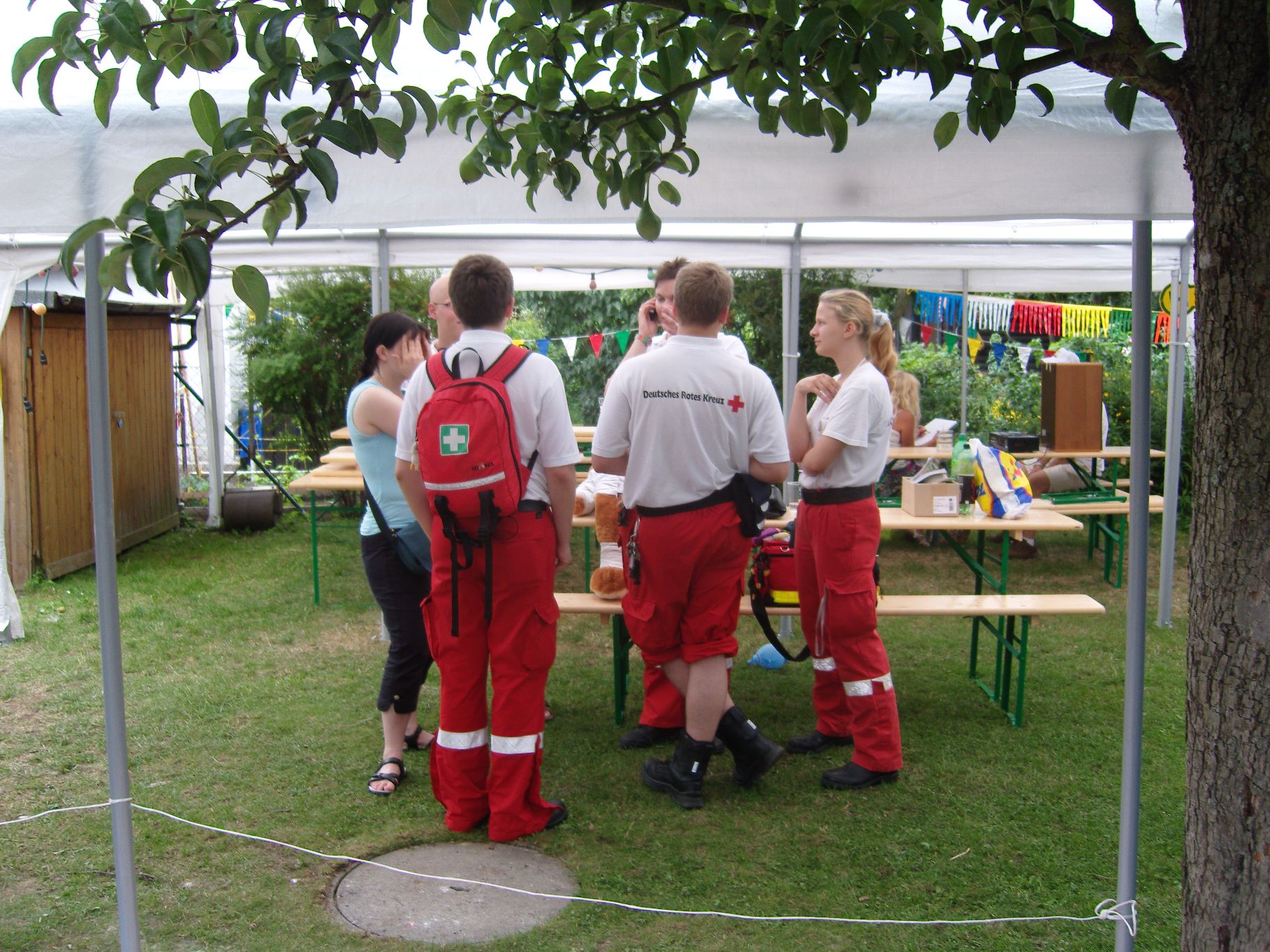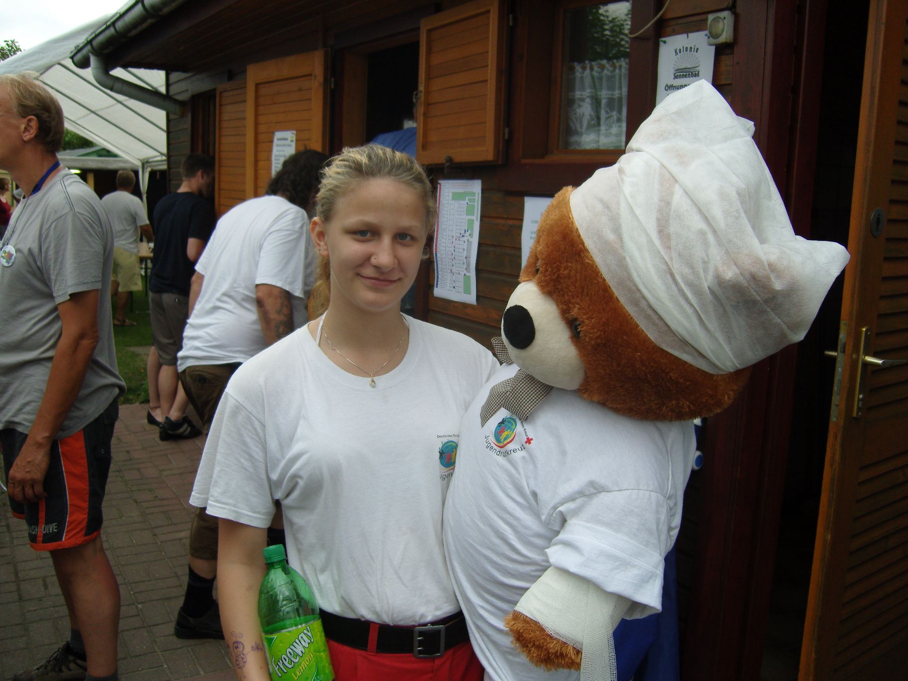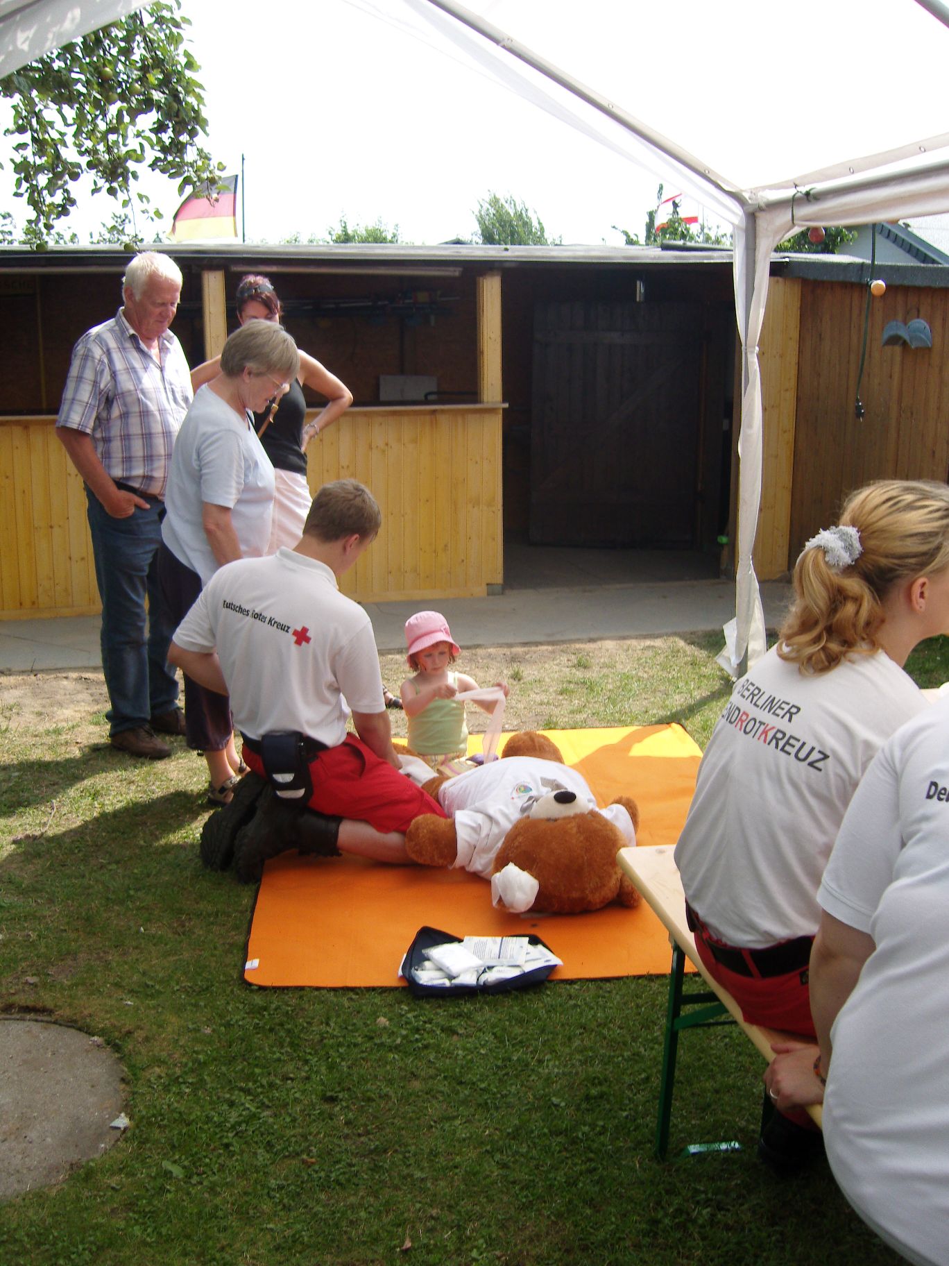 Ab jetzt haben wir auch Helfer vom Roten Kreuz, die sogar zweimal eingreifen mussten und kleinere Verletzungen behandeln konnten.