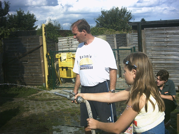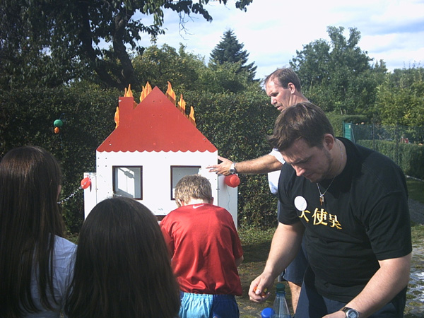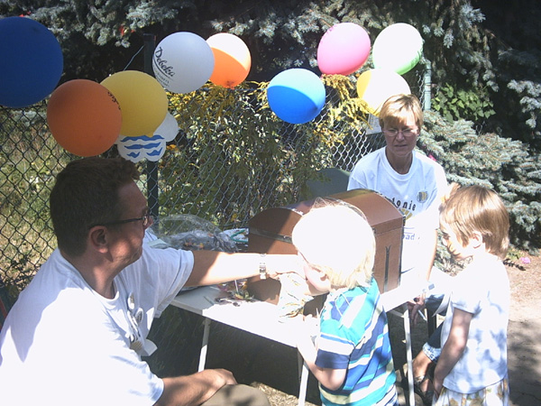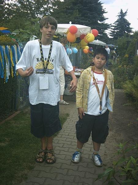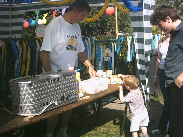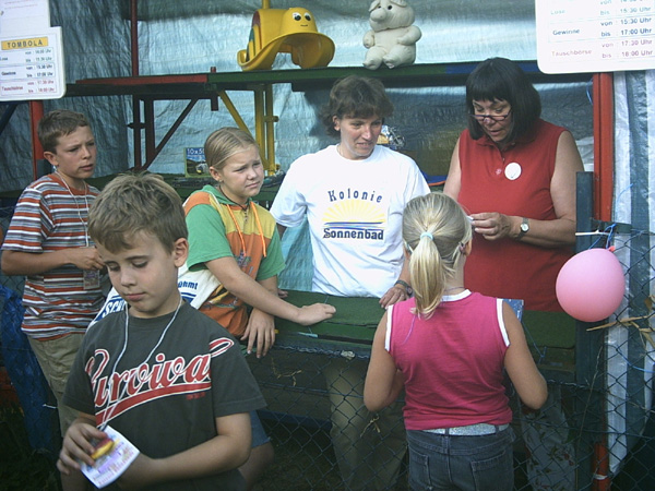 Festlich geschmückte Gärten brachten die Gäste unseres Kinder- und Sommerfestes, am 21.8.2004, gleich richtig in Stimmung. Die kleinen Akteure stürmten die Spielstände, mit Begeisterung und mit viel Spaß wurden die 20 Stände abgearbeitet. Natürlich konnte man nach einer Stärkung mit Wiener und Limo sich auf einer Kutschfahrt erholen bevor es zum Ponnyreiten ging. Große Augen und freudige Erwartung waren bei der Tombola vor Entgegennahme der Preise, das was die Stimmung prägte. Mit einem Eis in der Hand wurden die Gewinne ausprobiert.